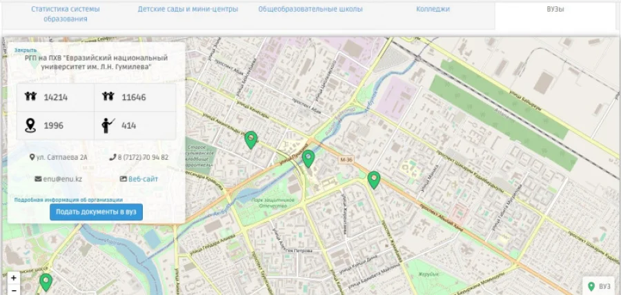 «Модуль позволит любому человеку получить детальную информацию о качественном составе педагогов, техническом оснащении, обеспечении учебниками и количестве учащихся любого детсада, школы, колледжа или вуза страны. Будут открыты и сведения по бюджету той или иной организации. Это даст возможность родителям прямо на карте выбрать учебное заведение, получить о ней актуальную и достоверную информацию и сравнить с другими организациями», — проинформировал Асхат Аймагамбетов.