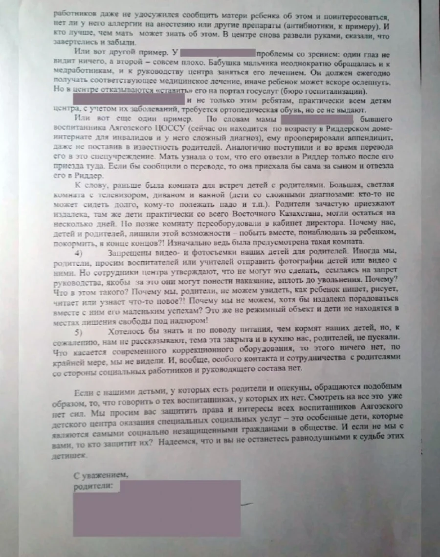 «Тем не менее родители обращались к акиму ВКО Ахметову Д.К. и ко мне как к уполномоченному по правам ребенка в РК в сентябре 2019 года. Об этом также говорилось в СМИ», — заявила Аружан Саин.