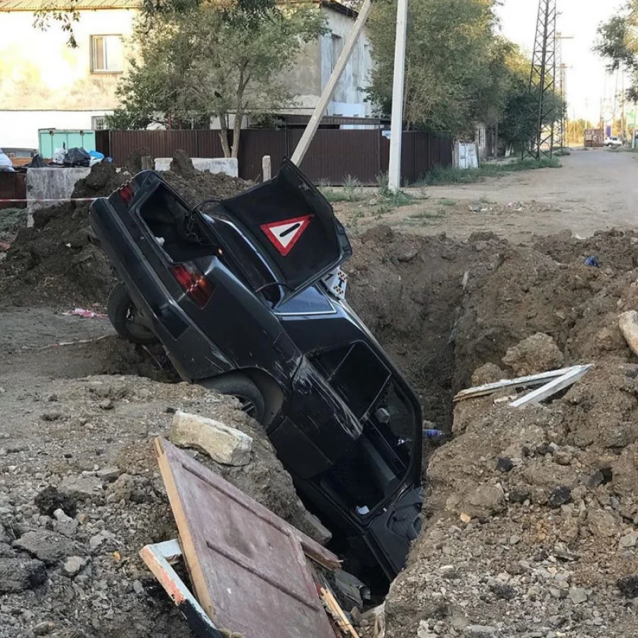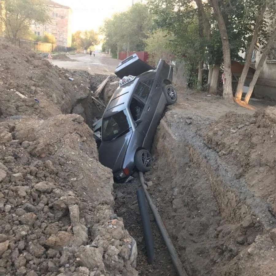 «По улице Жанасова была вырыта яма для выполнения работ по сетям канализации с начала июня 2020. Разрыли и оставили. Мы каждый день сталкиваемся с неприятными запахами канализации. Я три раза писала в акимат города Жезказган по поводу данного вопроса, также вопрос был задан акиму лично во время прямого эфира, на что я получила ответ о начале работ с 15 июля. По факту, на сегодняшний день, эта проблема не устранена. Сегодня, в районе часа ночи, в яму провалилась машина такси. По словам очевидцев, водитель был пьян...», — написала одна из пользователей соцсети.
