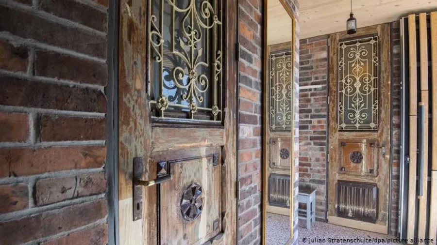 Но особенно здесь бросаются в глаза массивные резные двери. Раньше они были предметом интерьера строения, располагавшегося на территории одного фермерского хозяйства. Пришедший в негодность дом собрались сносить, а снятые с петель двери вместе с оконными рамами и отслужившей свое мебелью — вывезти на свалку. Однако в Ганновере им дали вторую жизнь.