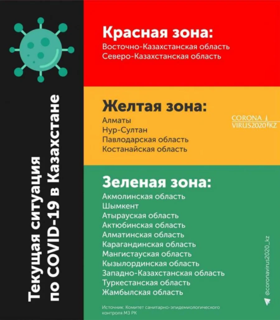 Незадолго до выступления акима сайт coronavirus2020.kz относил Алматы к «зеленой» зоне.