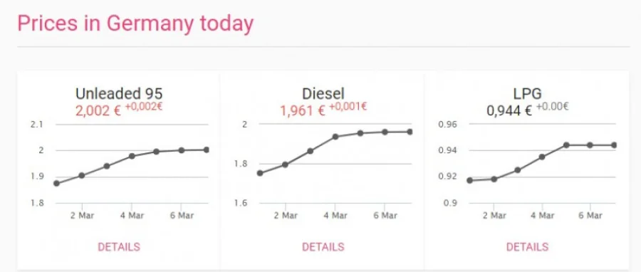 Вот, например, какие цены показывает платформа fuelo.net в Германии:
