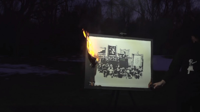 - Блокчейн-компания купила картину Бэнкси за 95 тысяч долларов и сожгла её в прямом эфире.